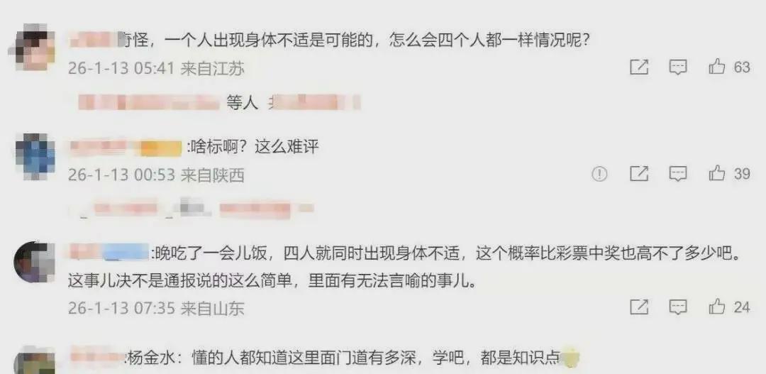 通报称,1月4日,四位评标专家(郑某、吴某、刘某、曹某)在工作中,因送餐延误未能按时用餐,出现了低血糖、头晕等症状。